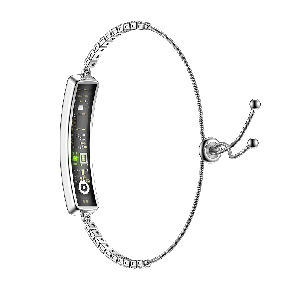 B5将高端珠宝美学与智能健康科技完美融合,以超轻便、舒适的外形呈现出令人眼花缭乱的钻石式设计。